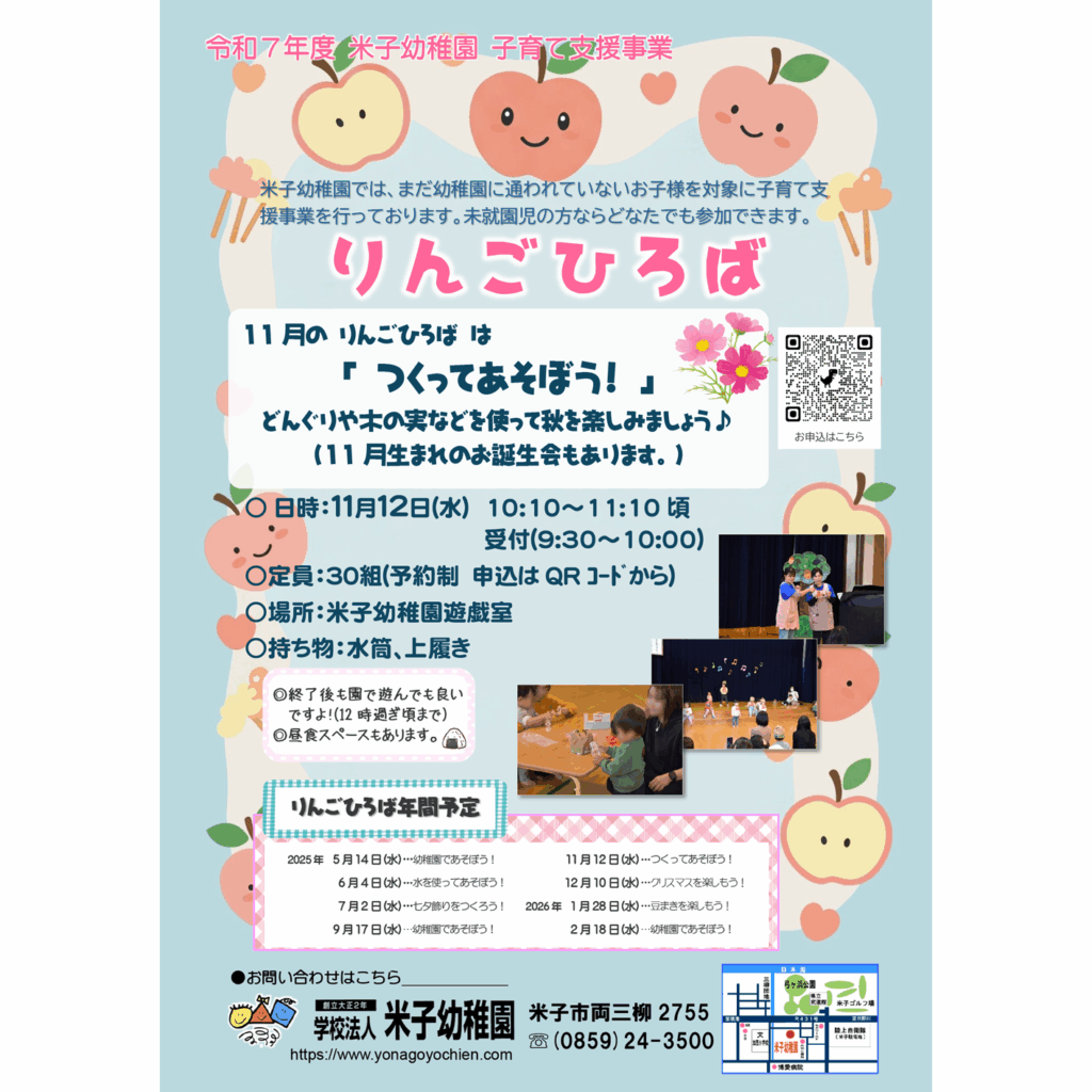 米子幼稚園では、まだ幼稚園に通われていないお子様を対象に子育て支援事業を行っております。未就園児の方ならどなたでも参加できます。